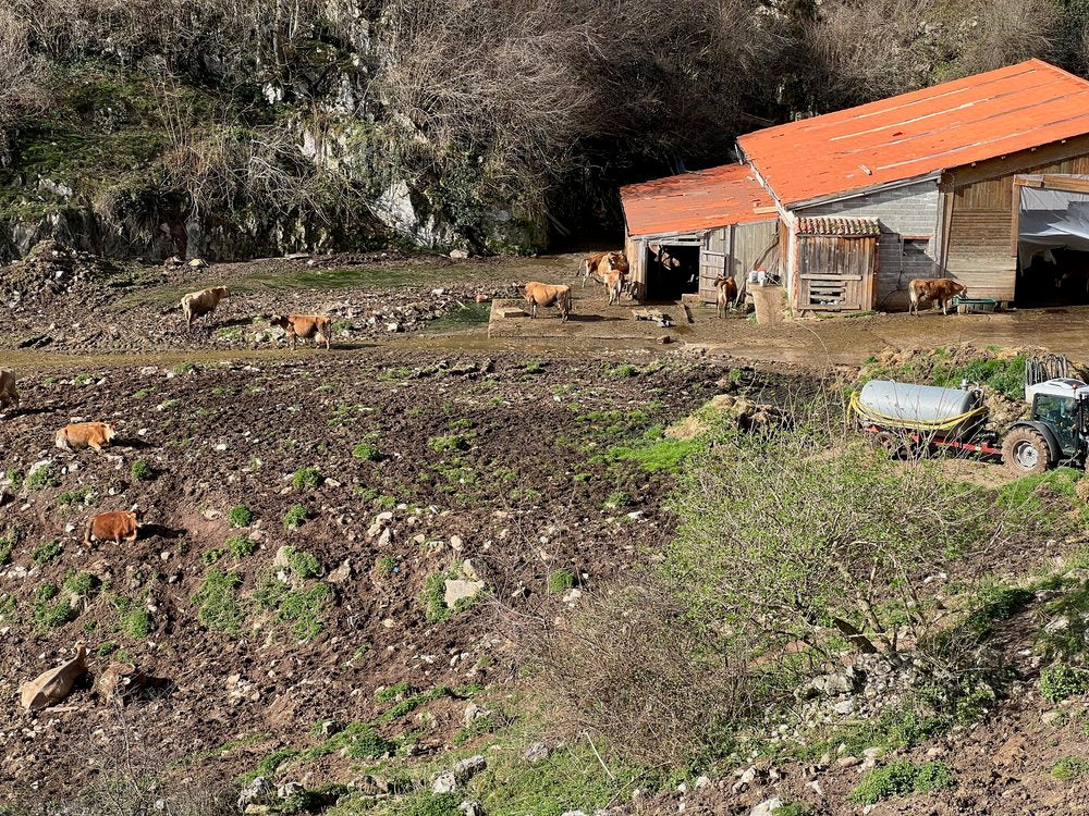 Las vacas de Javier Campo pastan a sus anchas en este lugar. El establo puede verse desde la propia quesería